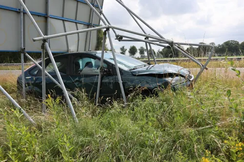 SINT-OEDENRODE - Maandagochtend is een automobilist, door onbekende oorzaak, van de weg geraakt en en met zijn voertuig onder een bewegwijzeringsbord belandt.