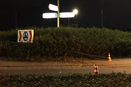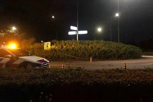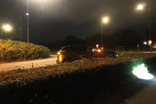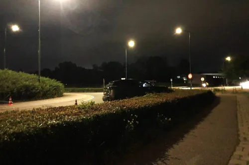Een automobilist verloor de macht over het stuur, ramde een lantaarnpaal op de rotonde Eerdsebaan en belande met voertuig in de heg.