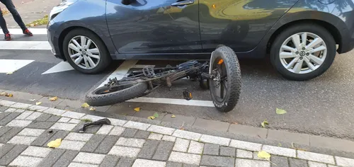 De jongeman op de fatbike kwam hard ten val en liep hoofdletsel op. De fatbike belandde deels onder een auto die van de andere kant kwam.