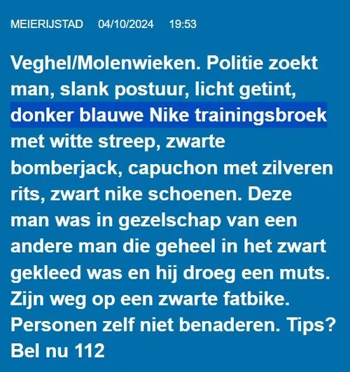 Vrijwel direct werd onderstaande Burgernetbericht verstuurd.