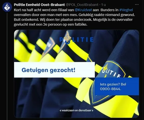 Vrijdagavond even na 19.30 uur werd er een overval gepleegd bij het Kruidvat in winkelcentrum De Bunders in Veghel.