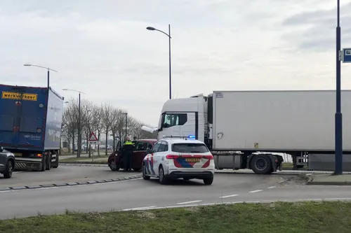 Donderdagmiddag even voor half één vond er op de rotonde aan de Corridor in Veghel een aanrijding plaats waarbij een vrachtwagen en een personenauto waren betrokken.