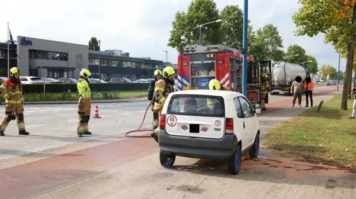 De brandweer heeft het voertuig geblust en, omdat er behoorlijk wat olie uitgelopen was, het wegdek gereinigd.