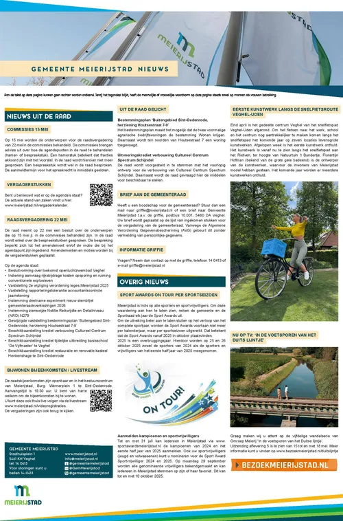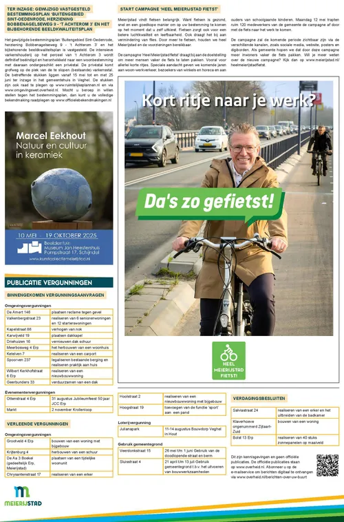 meierijstad.nieuws.nl van de bekendmakingen van de gemeente Meierijstad met betrekking tot vergunningen en procedures. Wekelijks verschijnt de informatiepagina op deze nieuwssite.