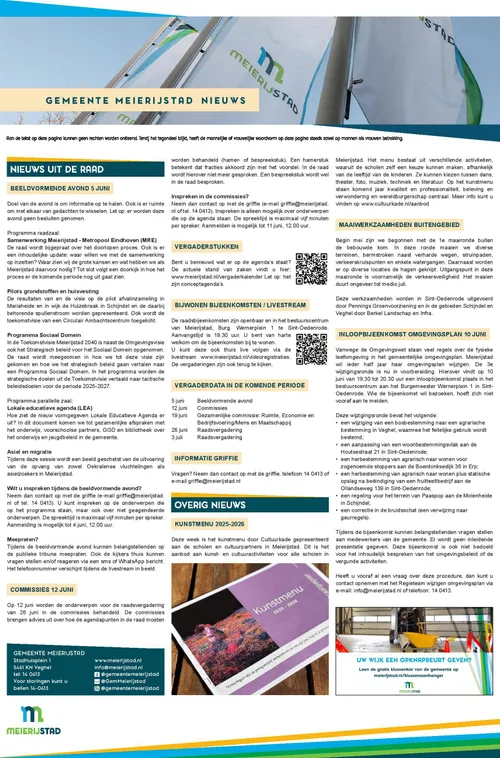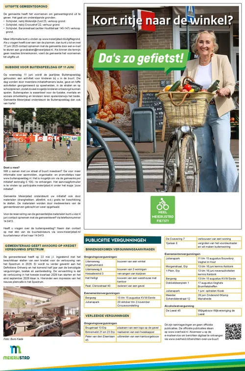 meierijstad.nieuws.nl van de bekendmakingen van de gemeente Meierijstad met betrekking tot vergunningen en procedures. Wekelijks verschijnt de informatiepagina op deze nieuwssite.