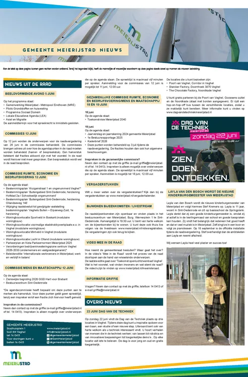 Blijf op de hoogte via meierijstad.nieuws.nl van de bekendmakingen van de gemeente Meierijstad met betrekking tot vergunningen en procedures. Wekelijks verschijnt de informatiepagina op deze nieuwssite.