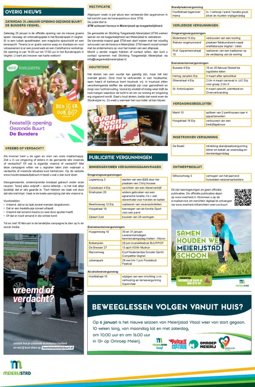 meierijstad.nieuws.nl van de bekendmakingen van de gemeente Meierijstad met betrekking tot vergunningen en procedures. Wekelijks verschijnt de informatiepagina op deze nieuwssite.