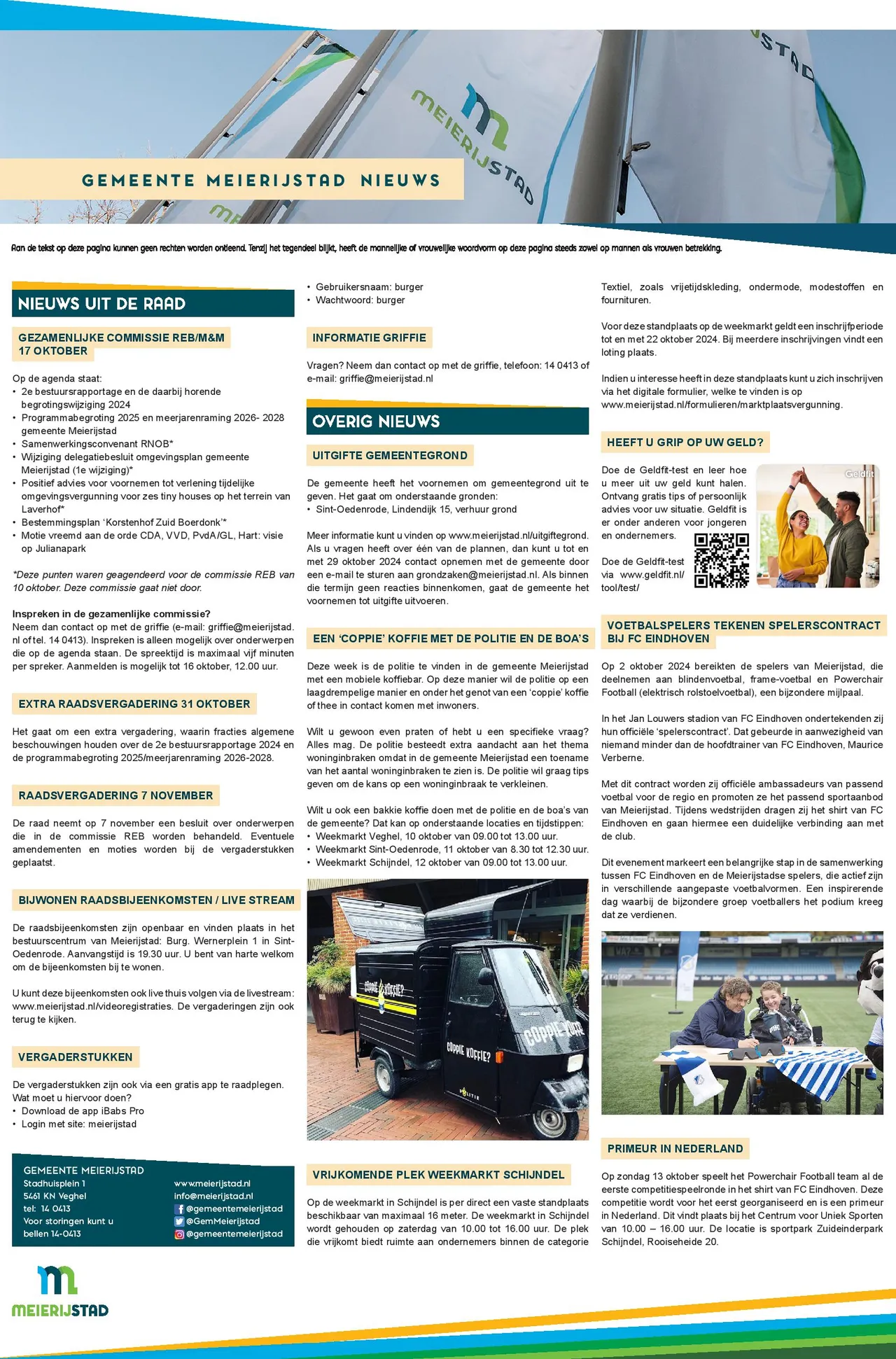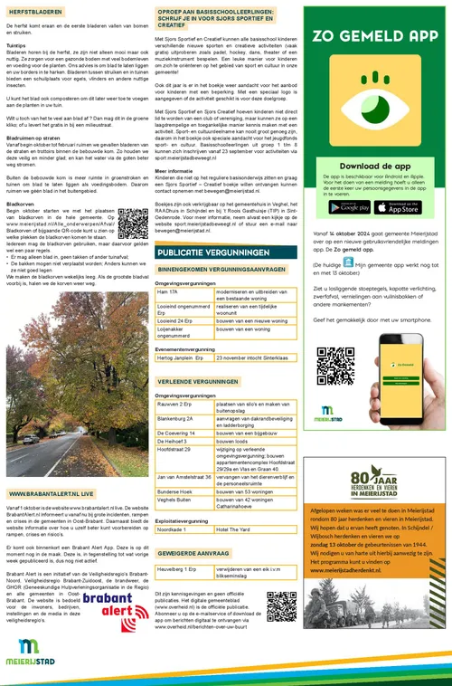 Blijf op de hoogte via meierijstad.nieuws.nl van de bekendmakingen van de gemeente Meierijstad met betrekking tot nieuws, vergunningen en procedures. Wekelijks verschijnt de informatiepagina op deze nieuwssite.