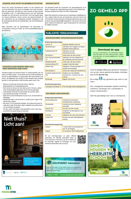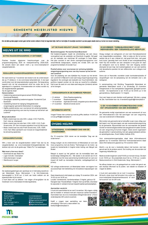 Blijf op de hoogte via meierijstad.nieuws.nl van de bekendmakingen van de gemeente Meierijstad met betrekking tot nieuws, vergunningen en procedures. Wekelijks verschijnt de informatiepagina op deze nieuwssite.