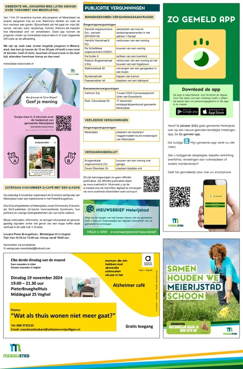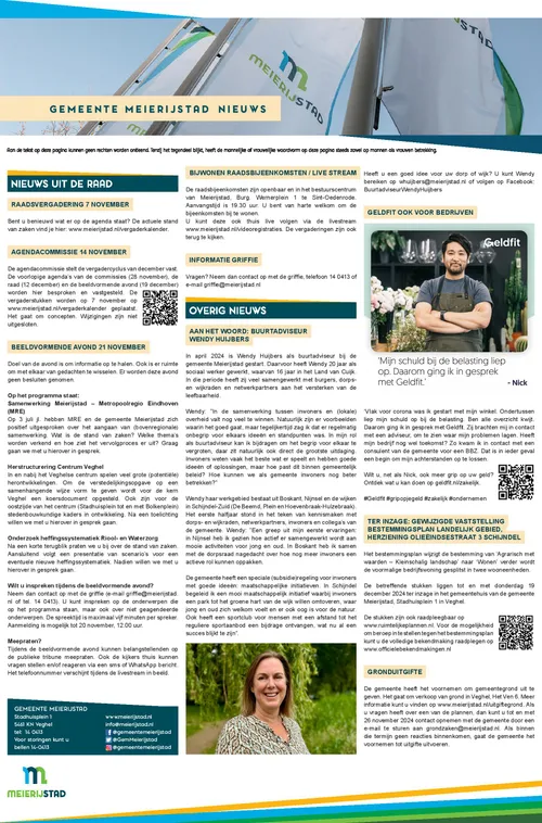 Blijf op de hoogte via meierijstad.nieuws.nl van de bekendmakingen van de gemeente Meierijstad met betrekking tot nieuws, vergunningen en procedures. Wekelijks verschijnt de informatiepagina op deze nieuwssite.