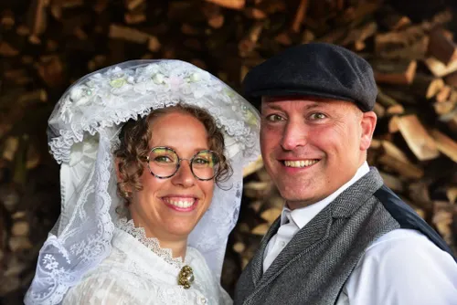 Boerenbruidspaar Alex & Janneke en hun getuigen