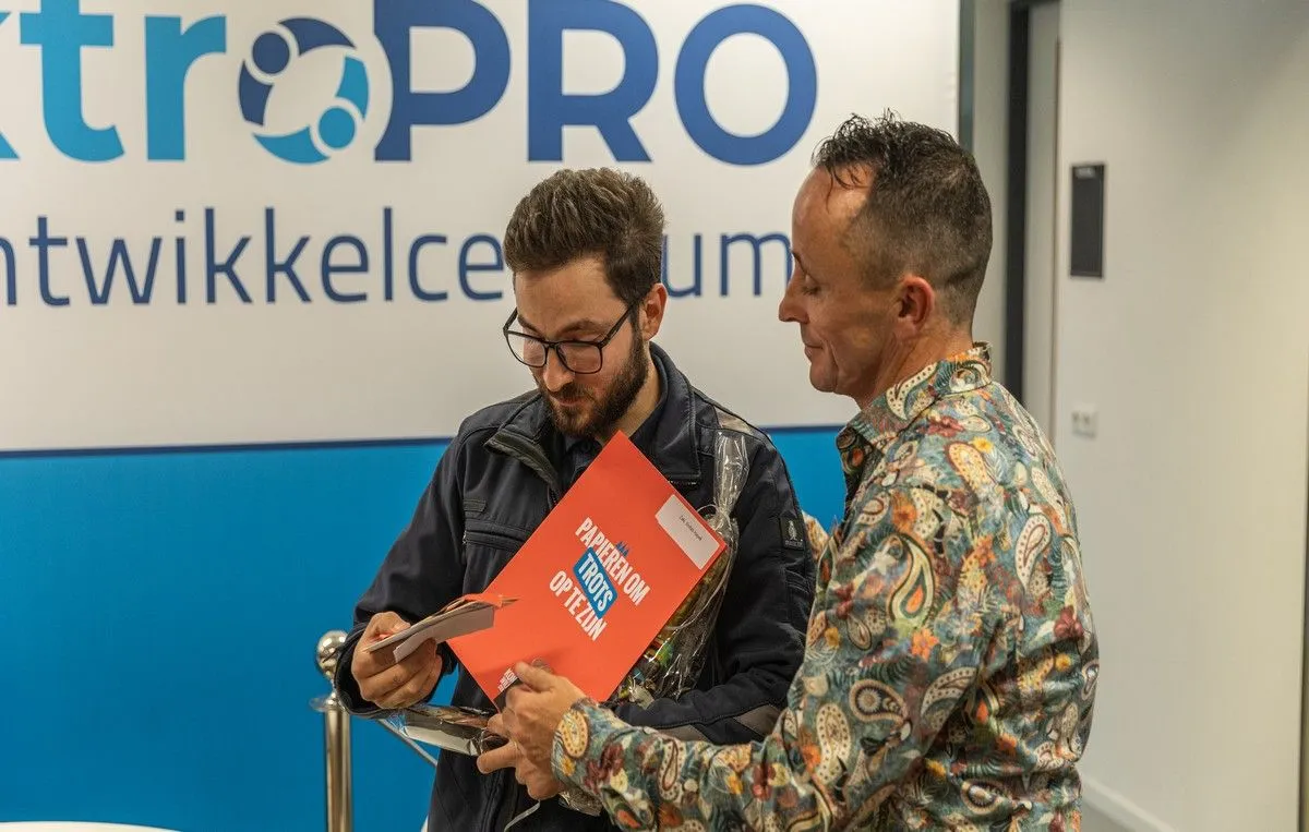 Initiatiefnemer van dit project is Marcel van Ras. "ElektroPRO is opgericht om starters en zij-instromers met extra persoonlijke aandacht in de praktijk op te leiden. Met werken en leren het vak leren en het diploma halen." De eerste student, Zaki, ontving woensdagmiddag uit handen van Thomas van Doremalen zijn MBO-diploma. Ook mocht hij een cadeaubon en koekjes (Quukskes*) in ontvangst nemen.