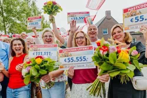 De kersverse winnaars kunnen hun ogen niet geloven als ze zien wat ze winnen. Op de cheques staan bedragen van 55.555 euro en 111.111 euro, afhankelijk van het aantal loten waarmee iemand meespeelt.