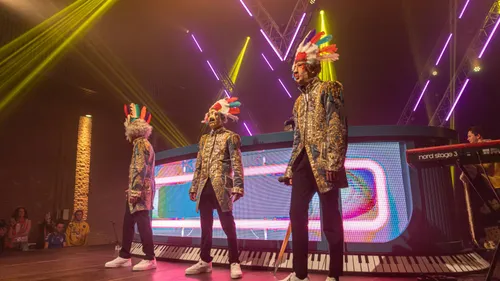 Even voor 21.00 uur betrad Rutger Heethuis als Koning Rudiger het podium om zijn mantel en attributen in te leveren en afscheid te nemen van het publiek. Direct daarna verschenen drie personen met een masker de bühne.