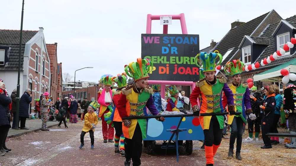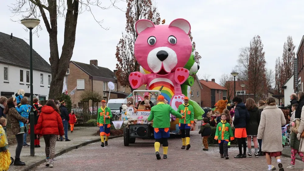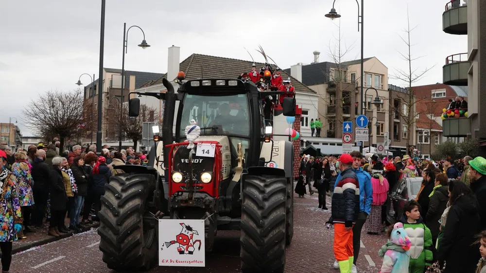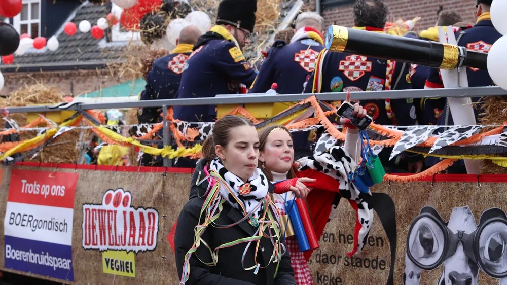 Zondagmiddag trok een bonte stoet door de Veghelse straten. Aan belangstelling geen gebrek, het publiek stond op sommige gedeelten van de route, rijendik.