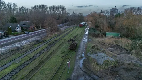 fietspad, de oude fundering van het voormalige stationsgebouw weer helemaal vrij is gekomen. Er zijn plannen om dit gebouw, wat per vergissing in 1966 gesloopt is, weer te