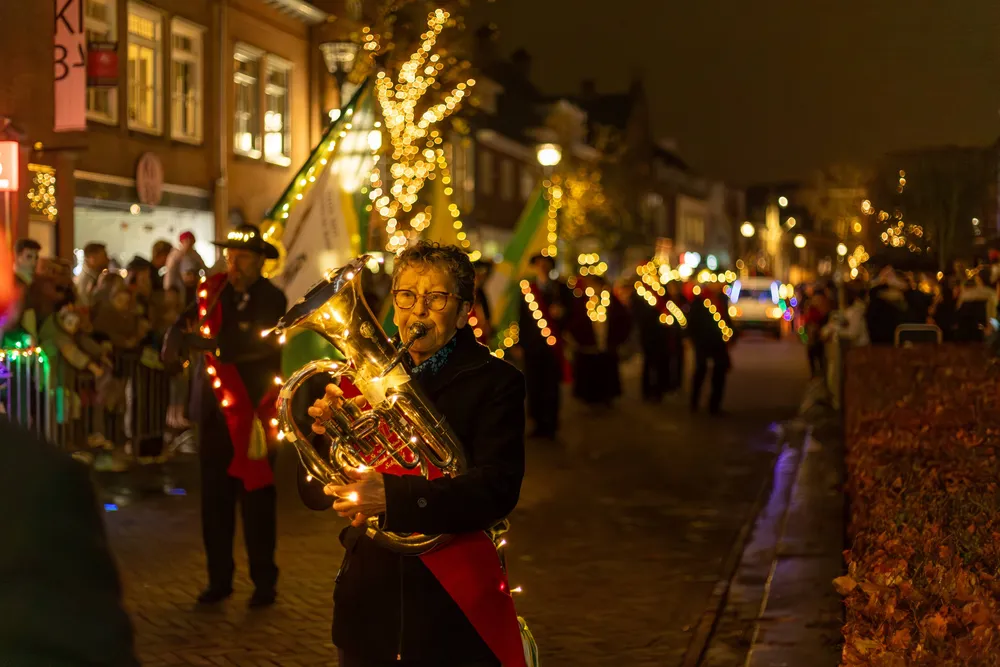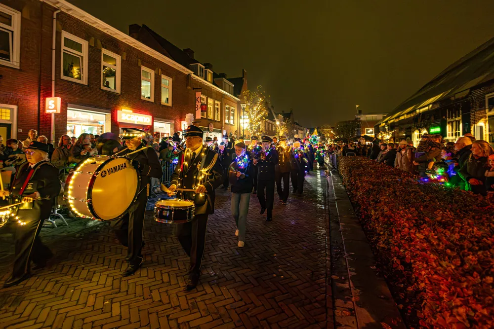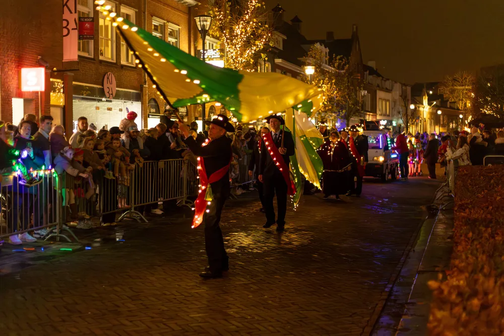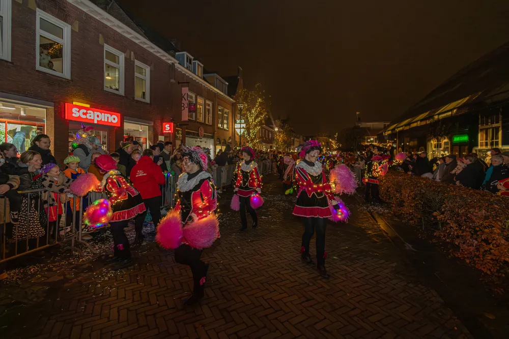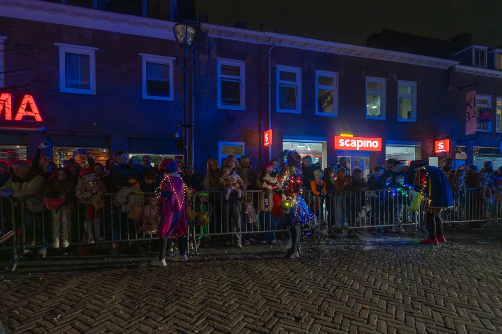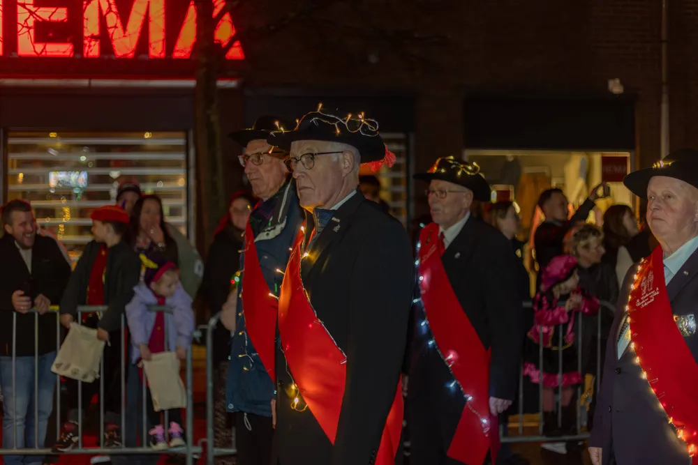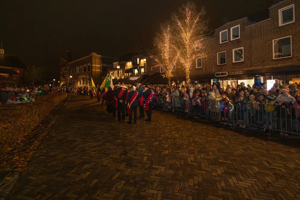 Ruim voor aankomst van de Sint was het al druk op de Markt in Schijndel. De kinderen gespannen in afwachting. Omstreeks 19.00 uur kwam de stoet, de Markt in Schijndel op. Na het Schijndelse Gilde en de harmonie verschenen de eerste Pieten, gevolgd door Sinterklaas, die geen mijter droeg maar een soort van pet.