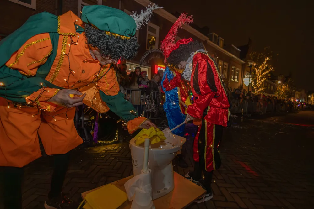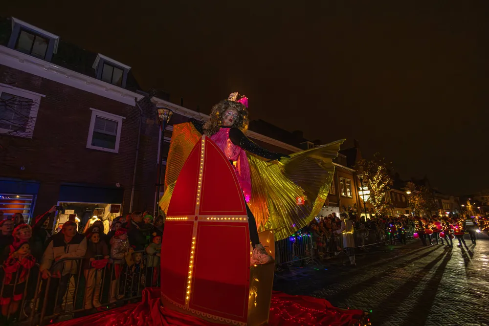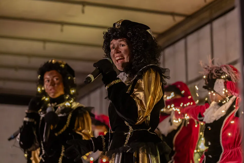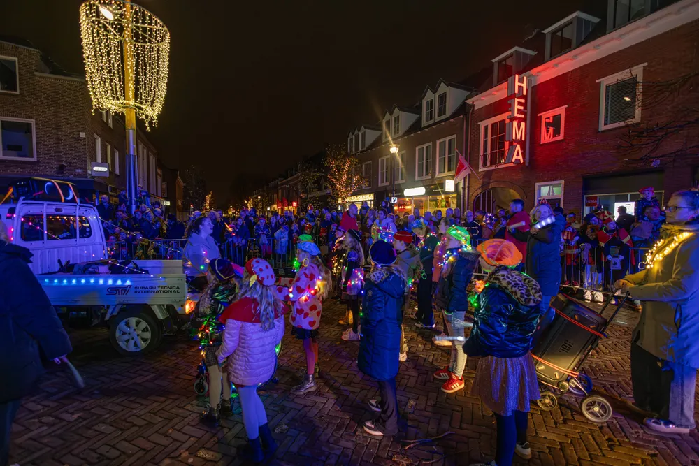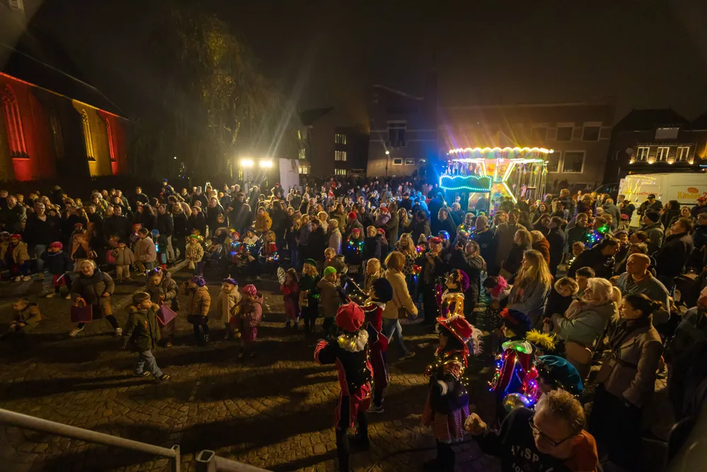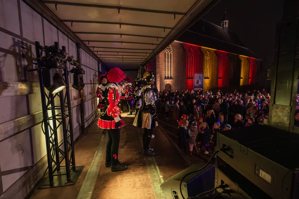 Na aankomst was er op de Markt nog van alles te beleven. Er was een zweefmolen, er traden Pieten en dansgroepen op en in de Kerk mochten kinderen met Pieten op de foto. Ook kregen de kinderen van de Pieten een staafje wat gedompeld was in heilig water. Dat staafje mochten zij in een ton gieten. Op een gegeven moment kwam DramaPiet met een glazen bol waar een hele kleine mijter in zat. Met een groot staafje schepte Piet wat water uit de ton, ging naar een speciale kamer en opeens wat de mijter weer groot. Nu kon de Sint zijn pet af- en zijn mijter opzetten.