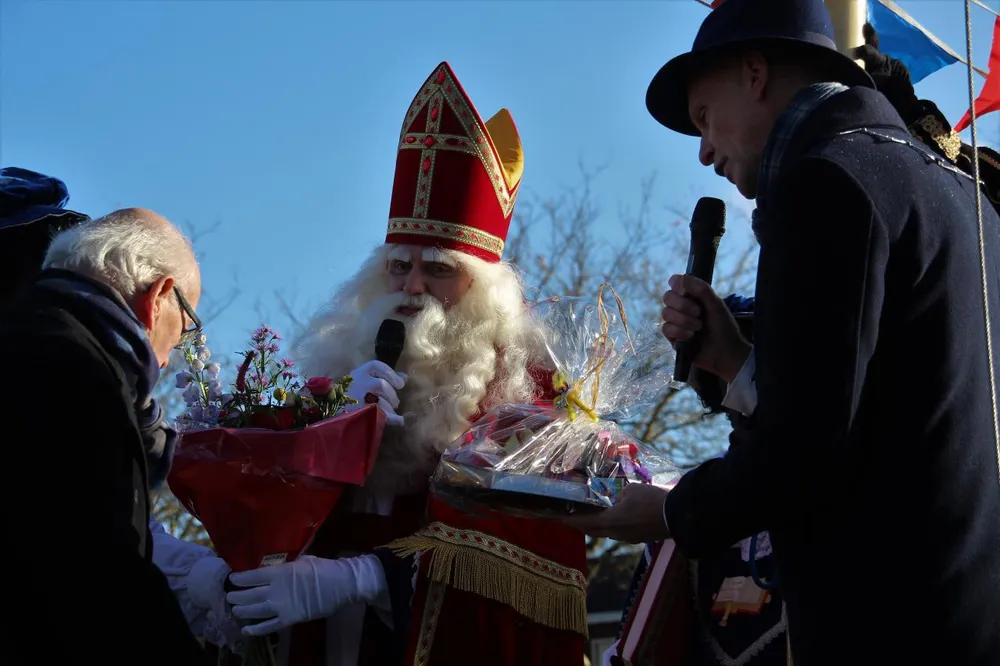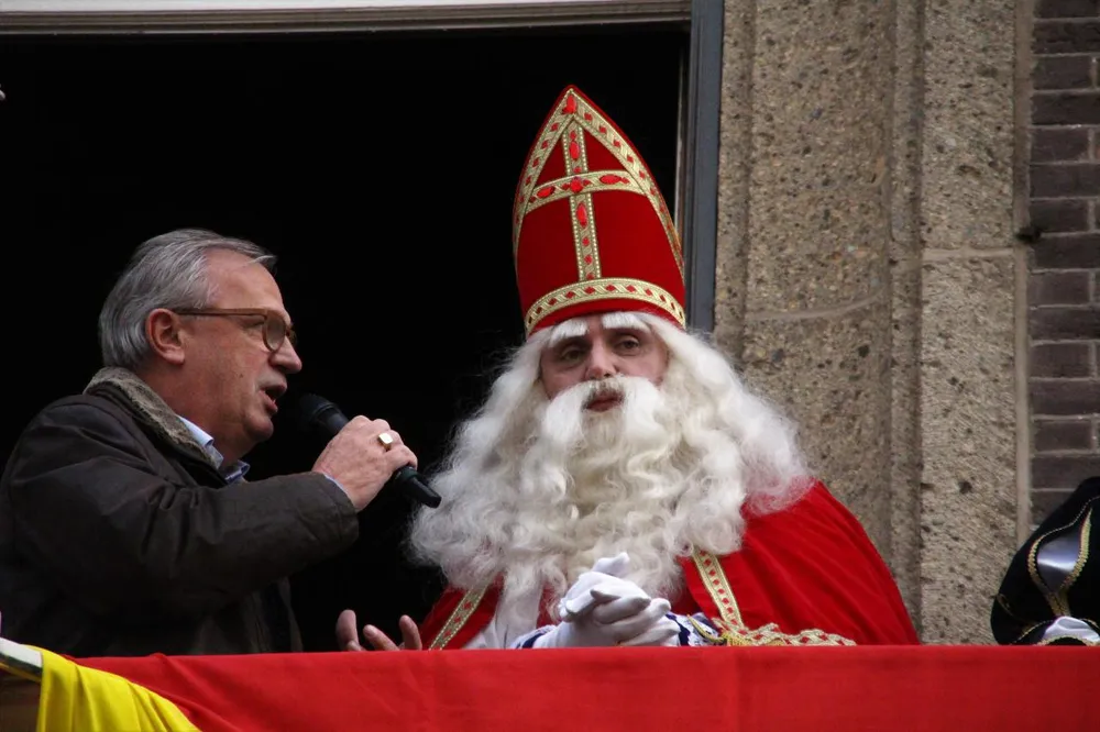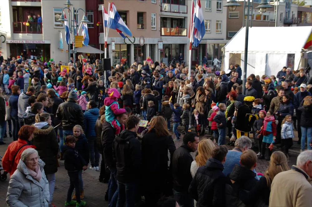 Rond kwart voor vier arriveerde Sinterklaas op de Markt bij het oude Stadhuis. Ook daar was het een drukte van belang.