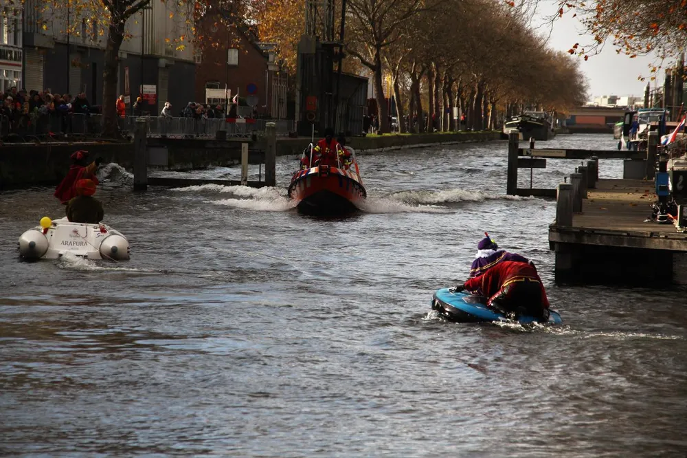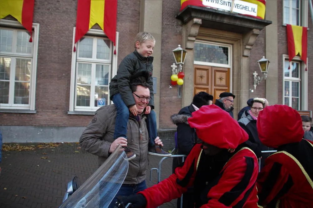 Daags na de intocht in Dokkum kwam Sinterklaas vandaag met bijna 200 Pieten aan in de haven van Veghel. Duizenden kinderen met ouders en grootouders stonden aan de kade en langs de route.