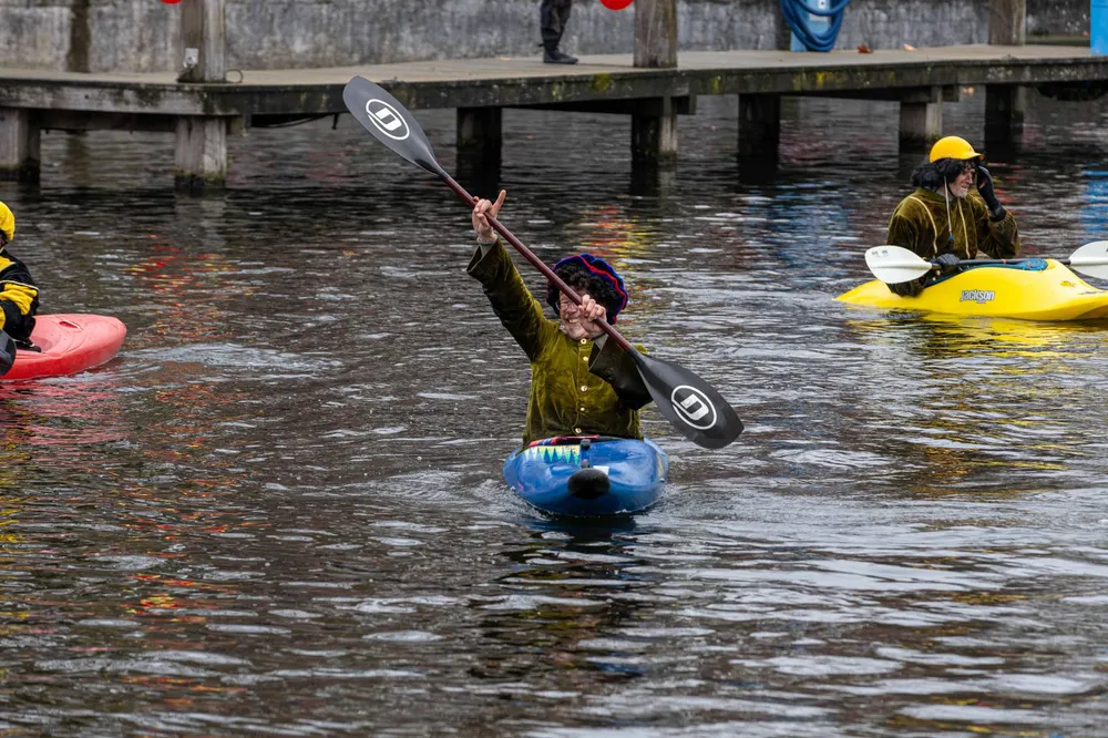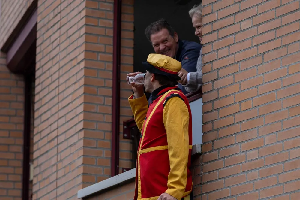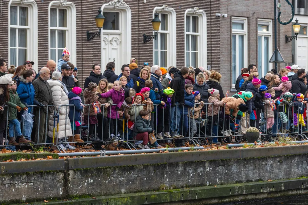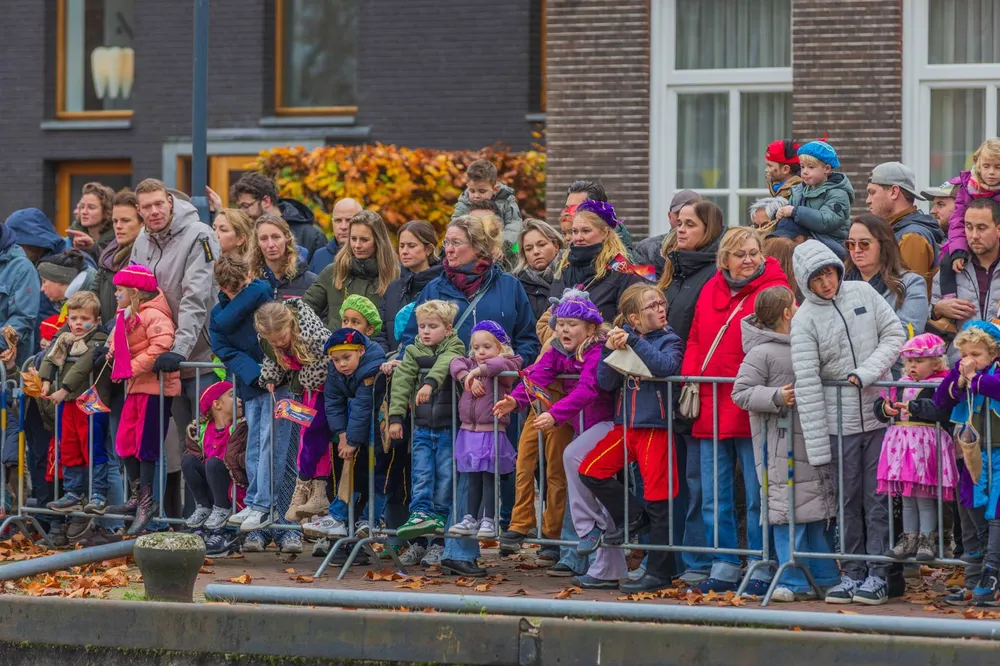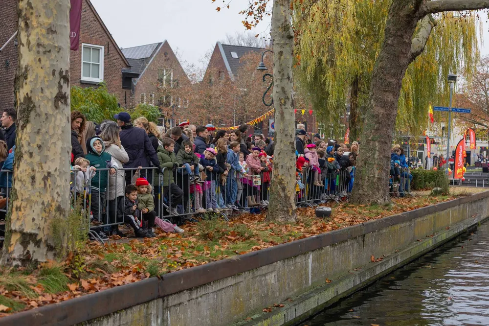 Niet alleen bij de haven maar ook langs de route naar de Markt stond het publiek rijendik.