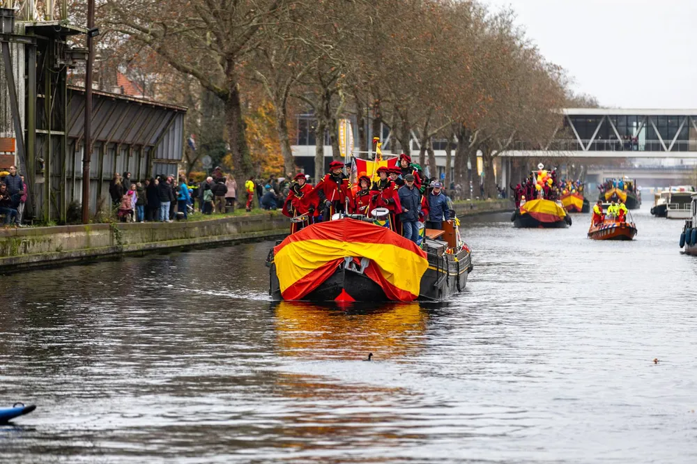 VEGHEL - Zondag omstreeks 13.30 uur meerde Sinterklaas, met zo’n 180 Pieten, met zijn schip aan in de haven van Veghel. Opgewacht door duizenden toeschouwers. De intocht in Veghel geldt al jaren als één van de grootste in de regio.