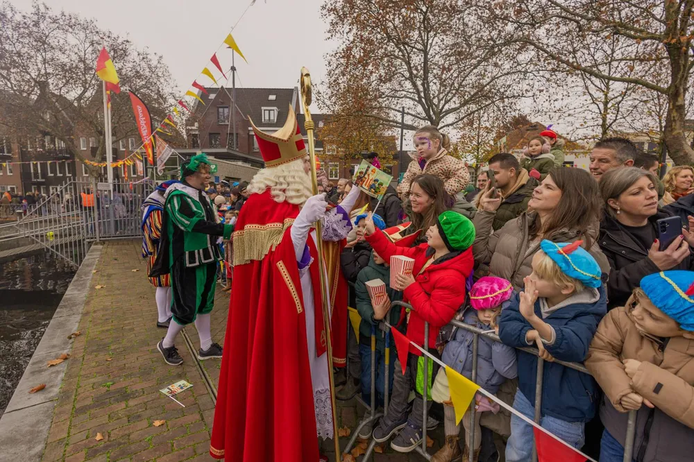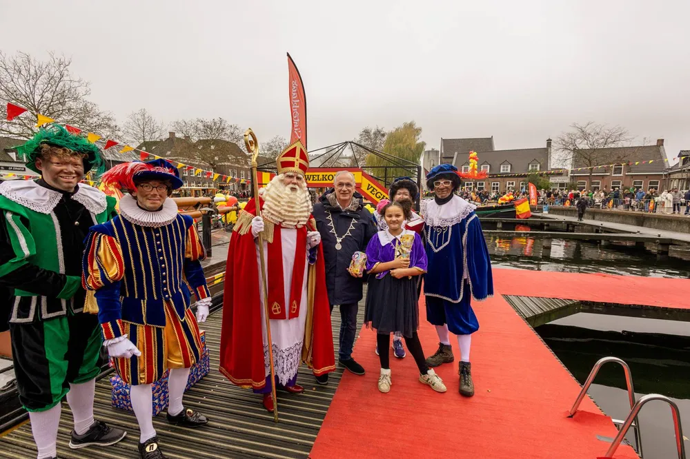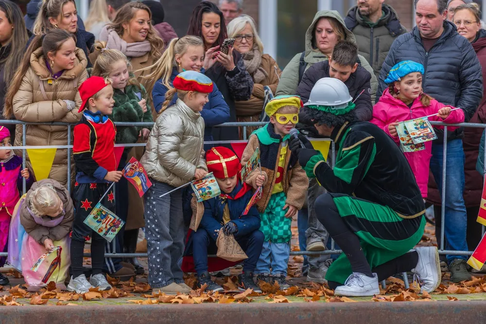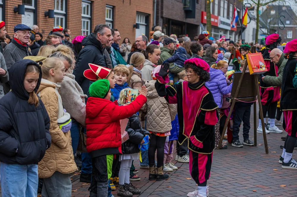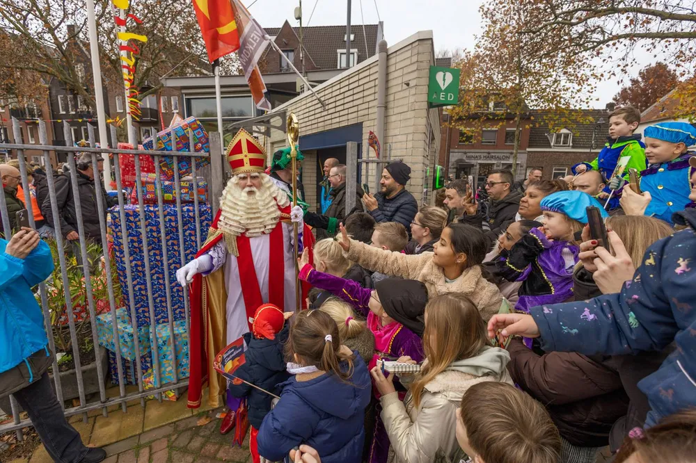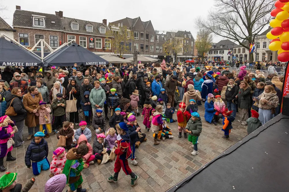 De Sint en zijn gevolg werd welkom geheten door wethouder Jan Goijaarts en Kinderburgemeester van Meierijstad, Layla van den Bosch.