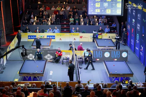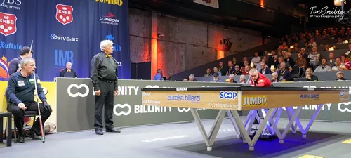 VEGHEL – Mooier kon het niet eindigen voor de twee kampen met supporters in de World Cup. De Nederlandse fanclub van Dick Jaspers gelukkig, de Belgen die juichten voor Frédéric Caudron minstens net zo blij. Was het een soort van salonremise in de derby van de lage landen, de 40-40 van de twee wereldtoppers in 20 beurten? Het kon zo lijken, maar zeker is dat de twee in de slotbeurten allebei streden voor kostbare winst. Frédéric Caudron maakte uiteindelijk als eerste uit, Dick Jaspers kwam gelijk met 1 vanaf acquit in de nabeurt. Het moest later op de avond leiden tot de plaatsing van beide spelers.