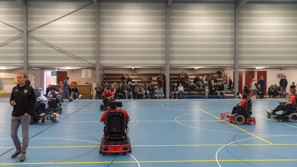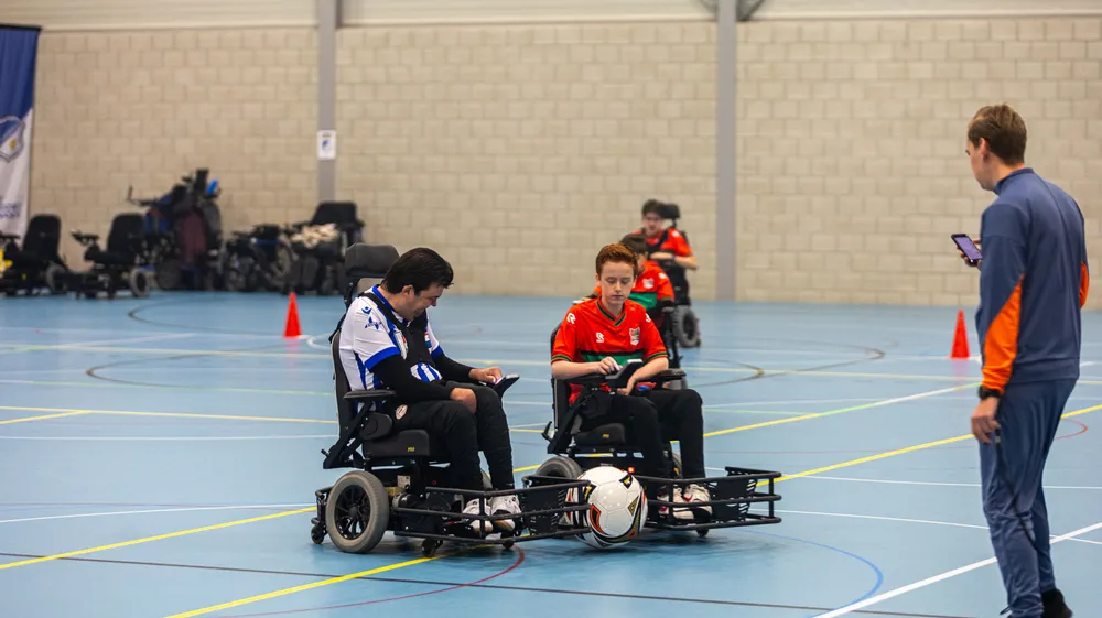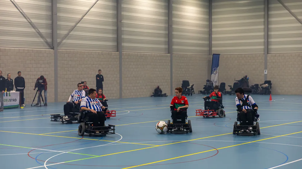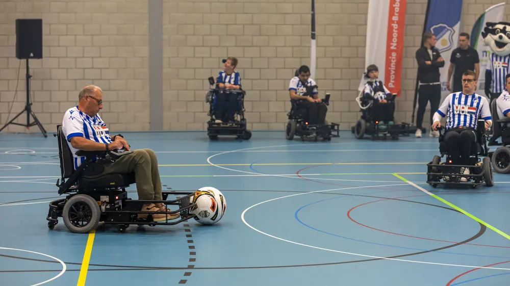 MEIERIJSTAD | Een mooie samenwerking tussen de KNVB, Stichting De Voetbaldroom en de gemeente Meierijstad om voetbal voor iedereen toegankelijk te maken. Zondag vond voor het eerst in Nederland, bij het Centrum voor Uniek Sporten in Schijndel, een officiële competitiespeelronde plaats voor Powerchair Football (elektrisch rolstoelvoetbal)